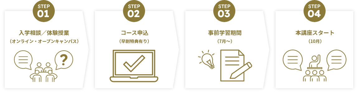 各コース詳細やキャンペーン特典内容、定員状況等が知りたい方は、オンライン個別相談会/各校オープンキャンパスへお気軽にご参加ください!